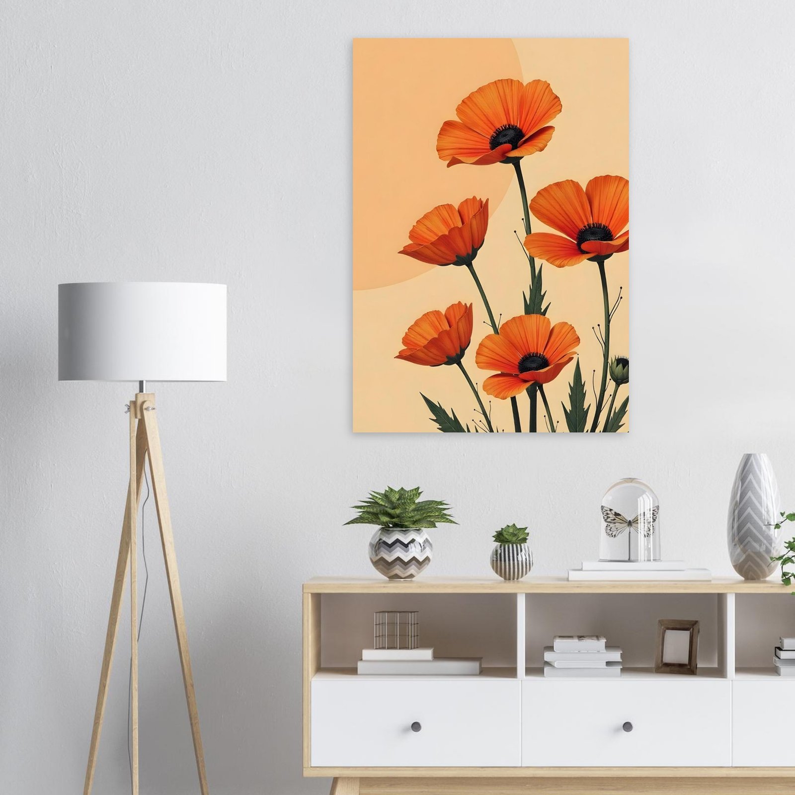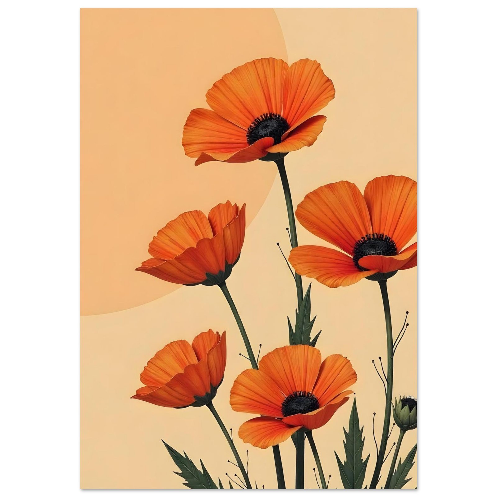 “Amanecer de Amapolas” es una obra llena de vida y color que captura la esencia vibrante de la naturaleza en floración. Con pétalos en tonos de naranja profundo y detalles que resaltan su textura y delicadeza, estas amapolas emergen como símbolo de pasión y renacimiento. El fondo en tonos suaves complementa el dinamismo de las flores, evocando el calor y la serenidad de un amanecer.