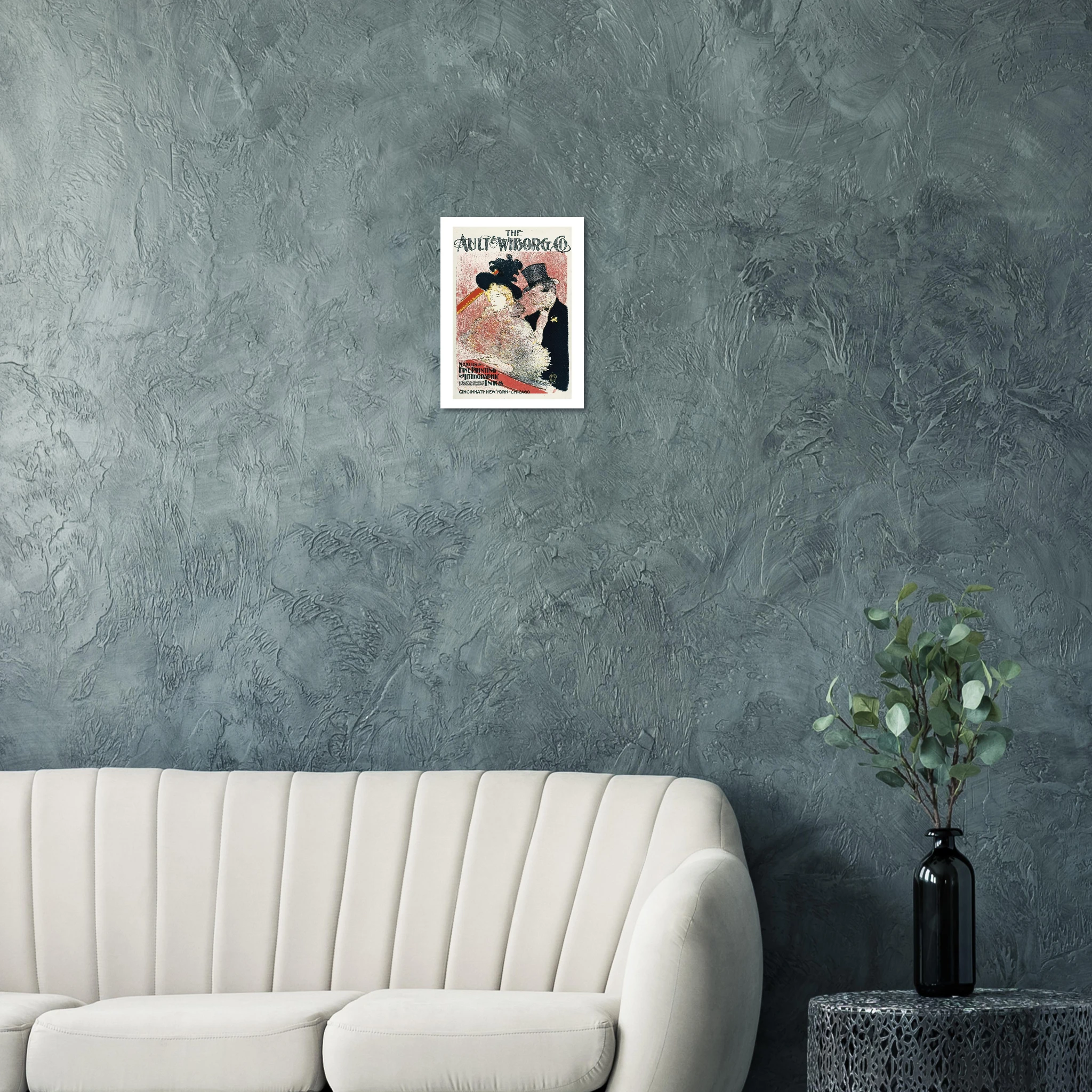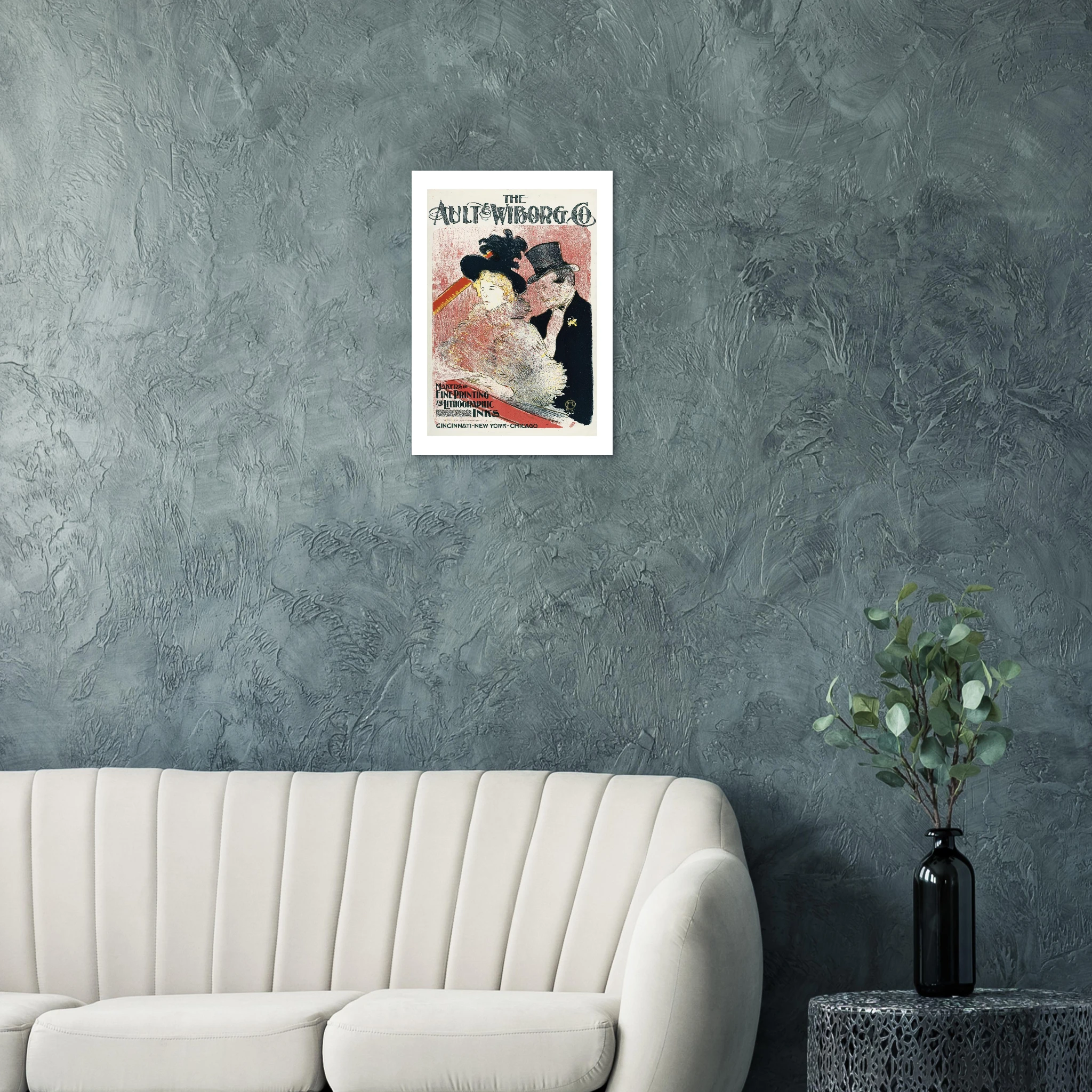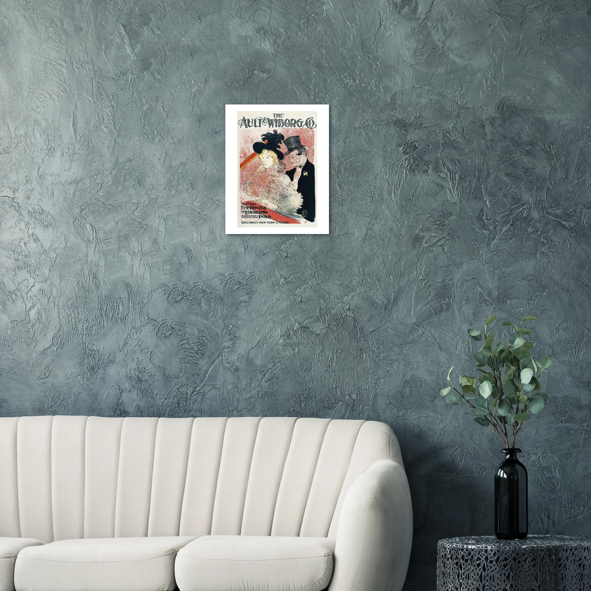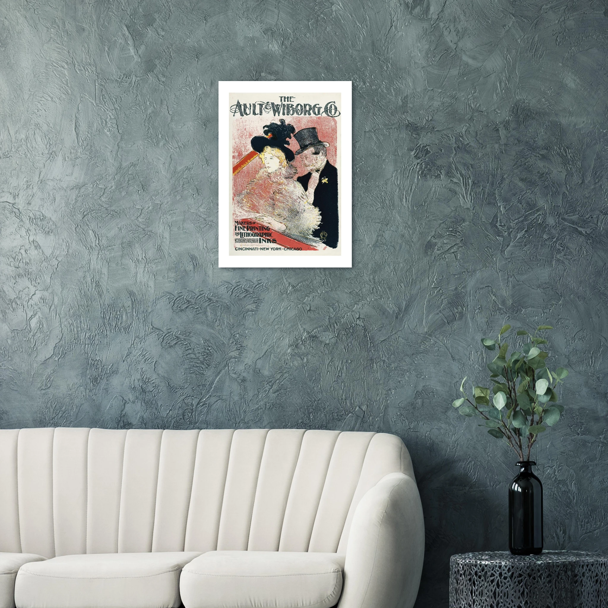 Este cartel publicitario de 1896 fue creado para promocionar las tintas de imprenta de la empresa estadounidense Ault & Wiborg en el mercado francés. Toulouse-Lautrec enfrenta el desafío de hacer visualmente atractivo un producto técnico e industrial, transformándolo en una pieza de diseño memorable.