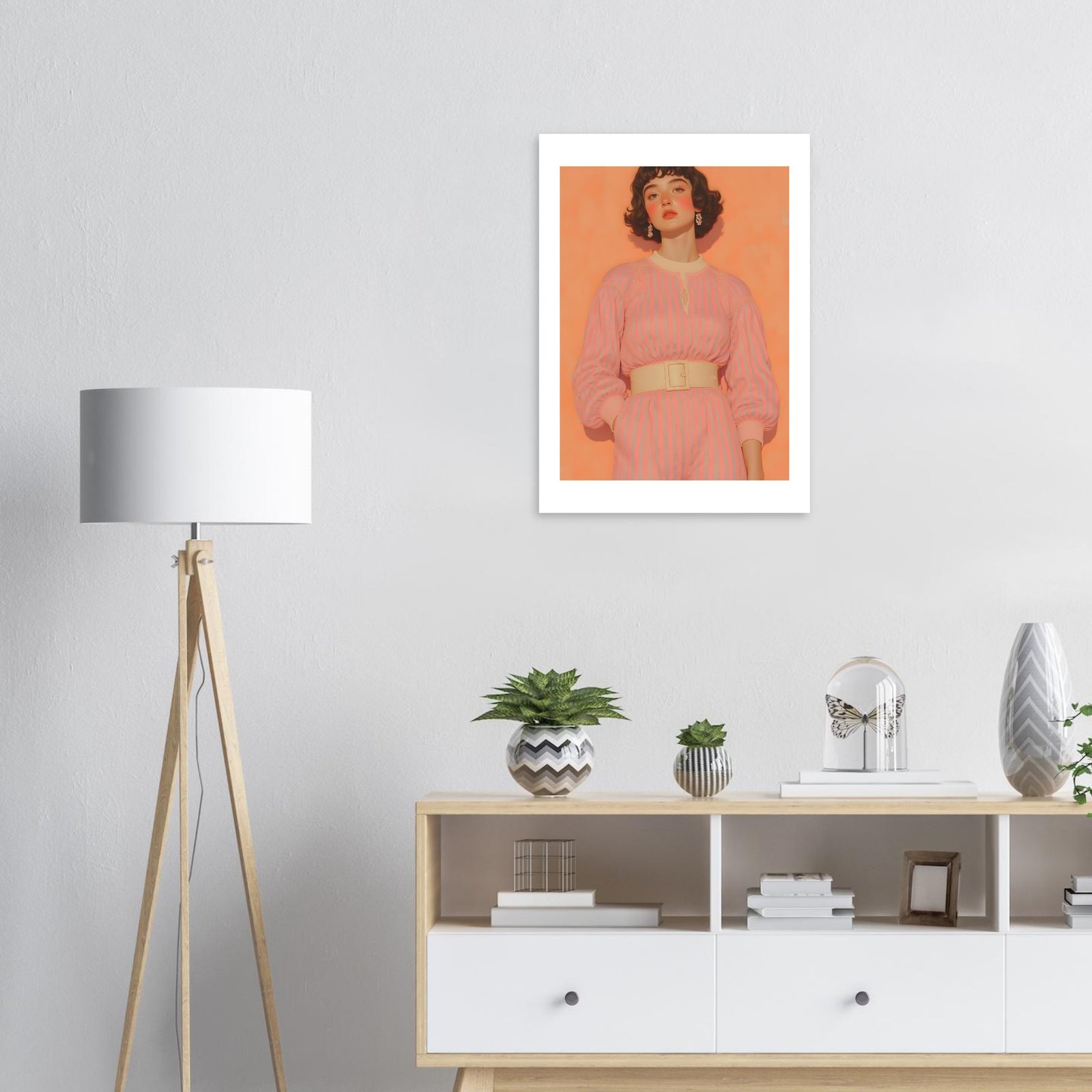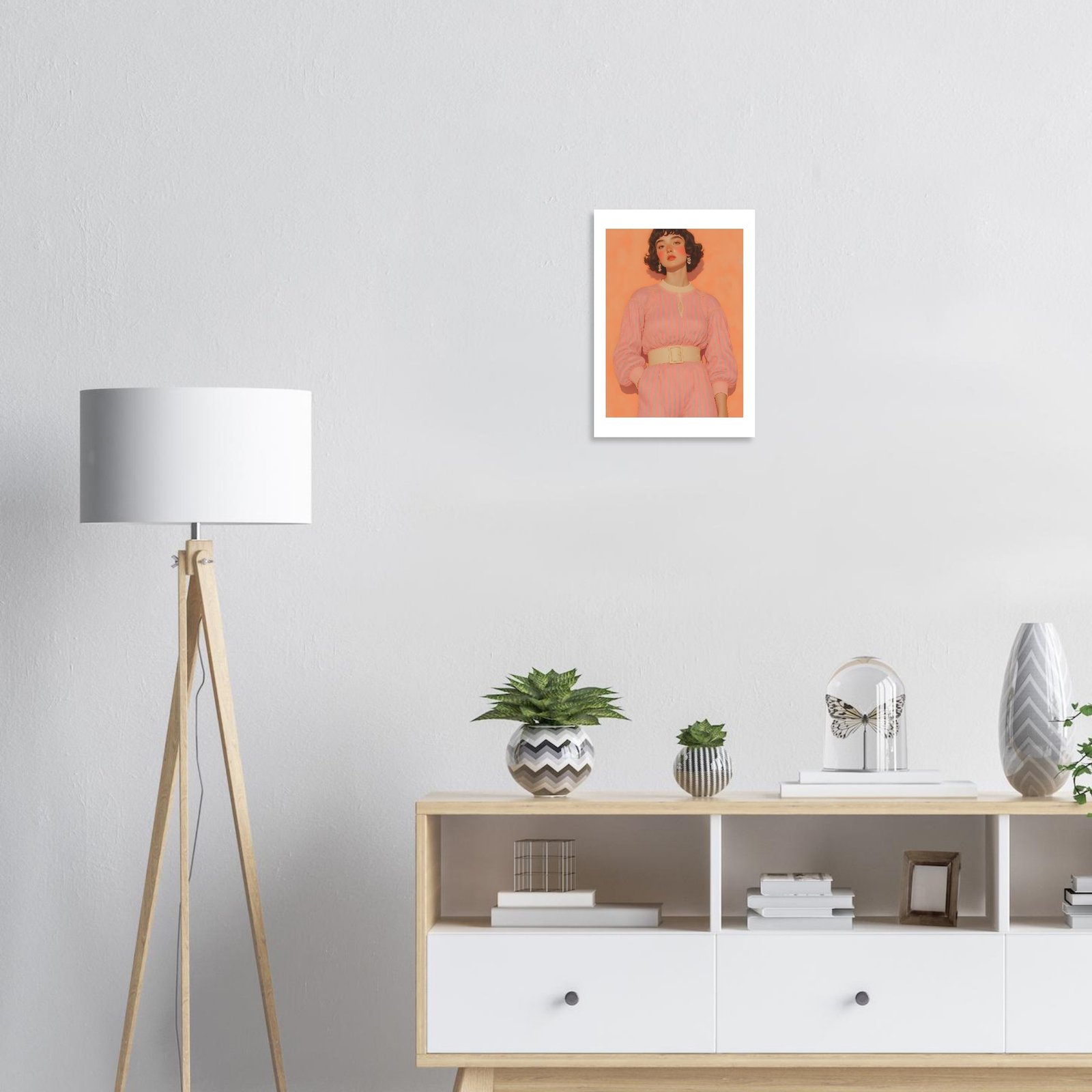 Los matices suaves y la técnica digital resaltan la expresión tranquila de la modelo, mientras los colores armonizan con cualquier tipo de decoración, aportando calidez y elegancia. Ideal para quienes buscan un retrato femenino y moderno que transmita calma y sofisticación.