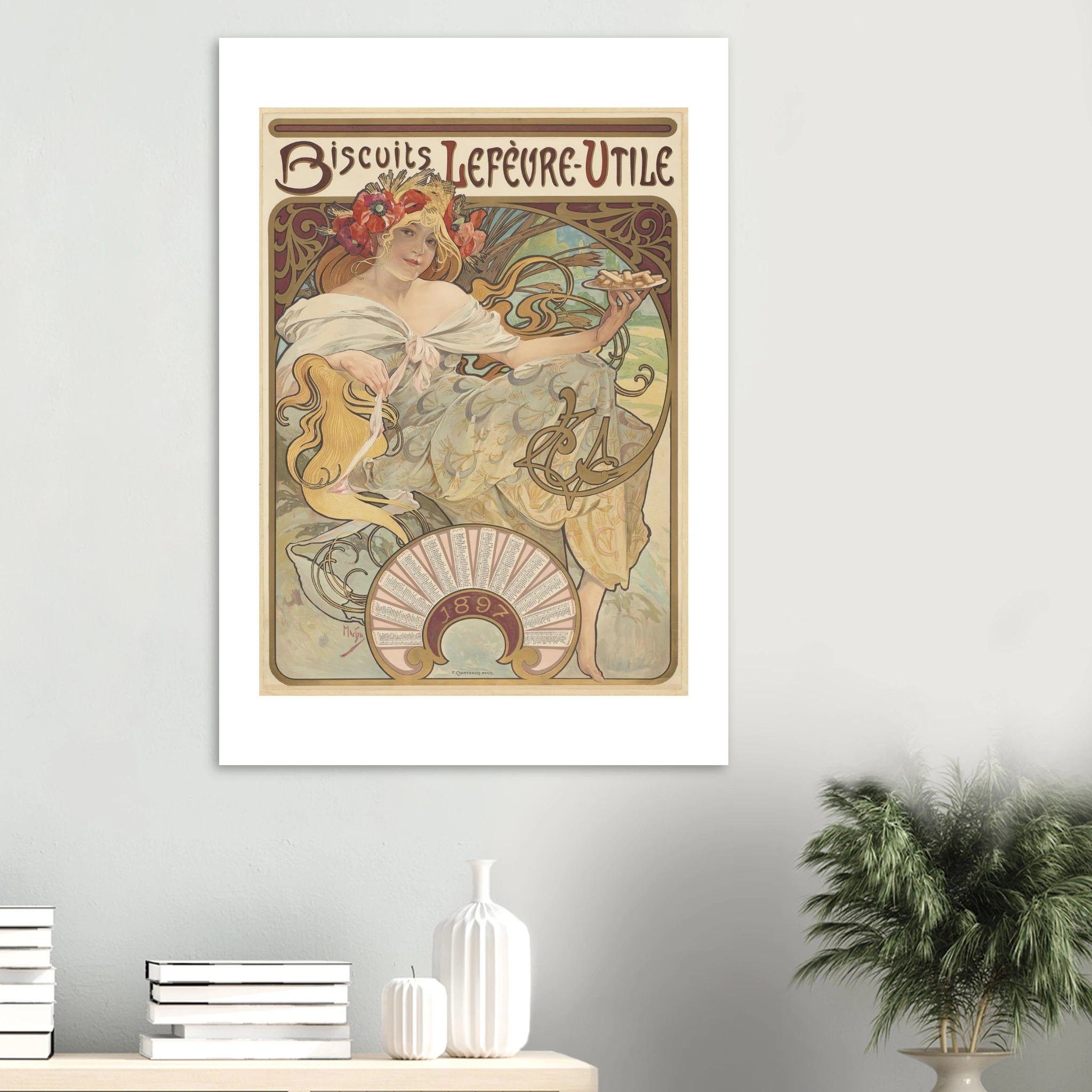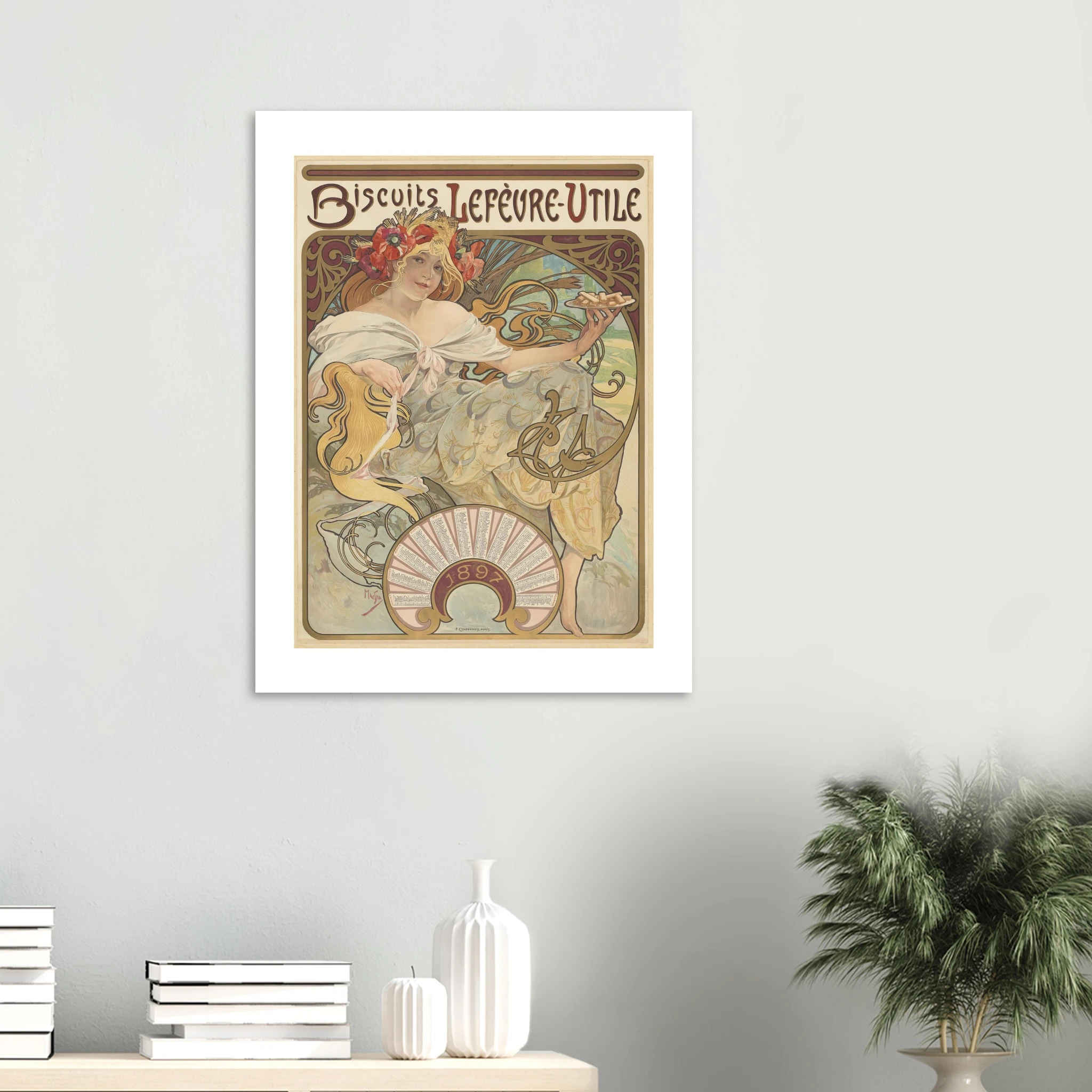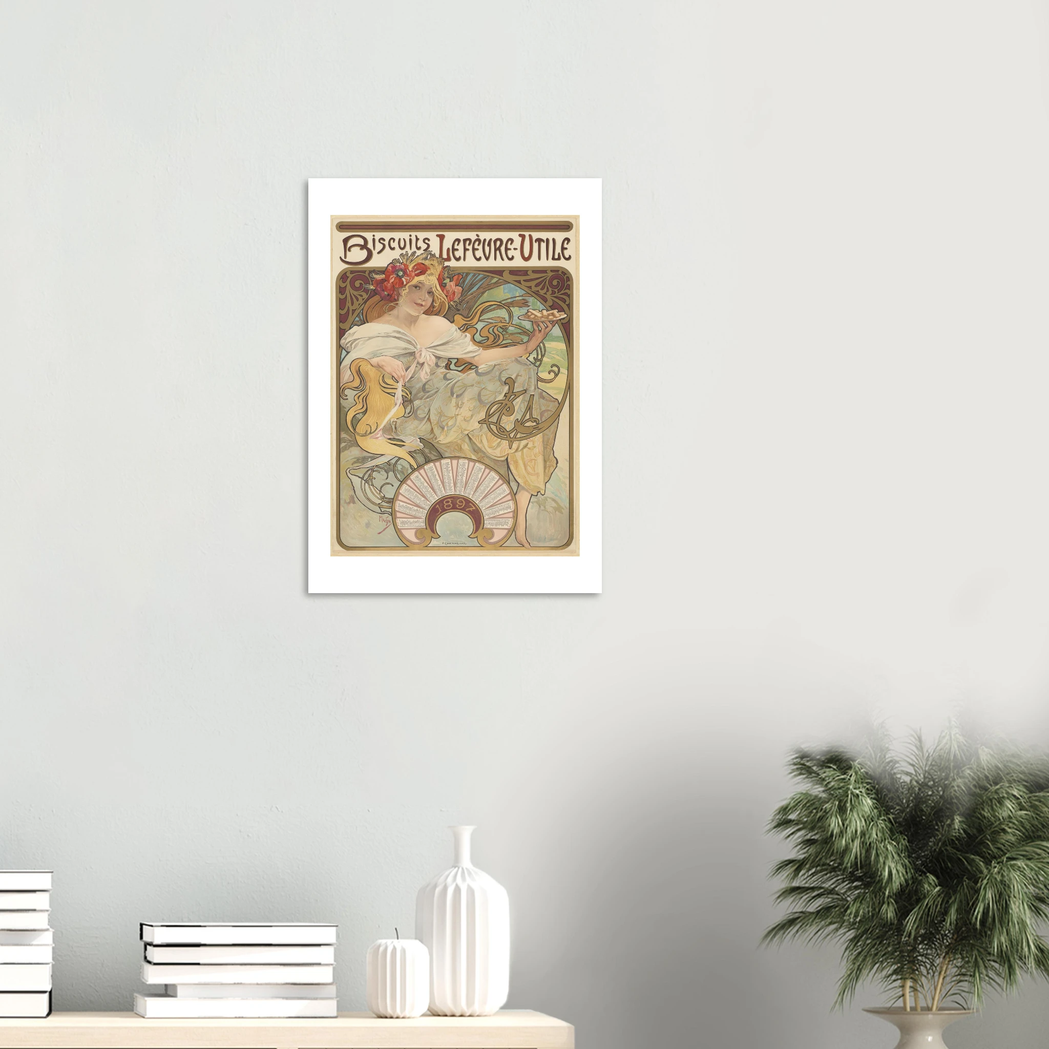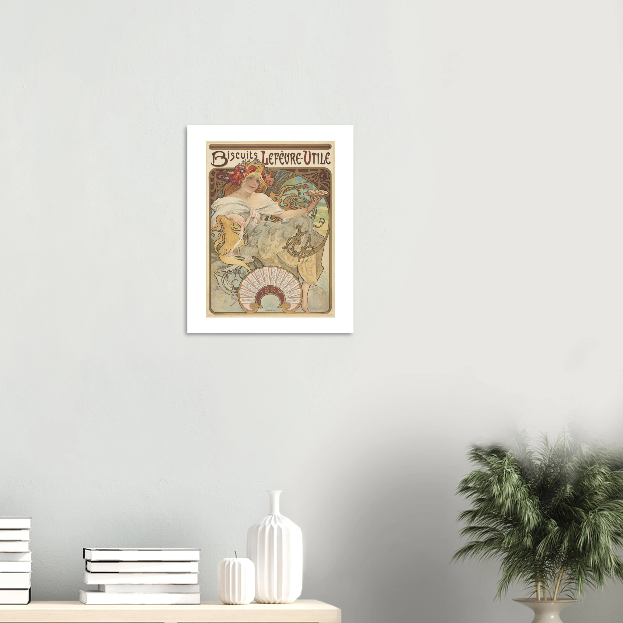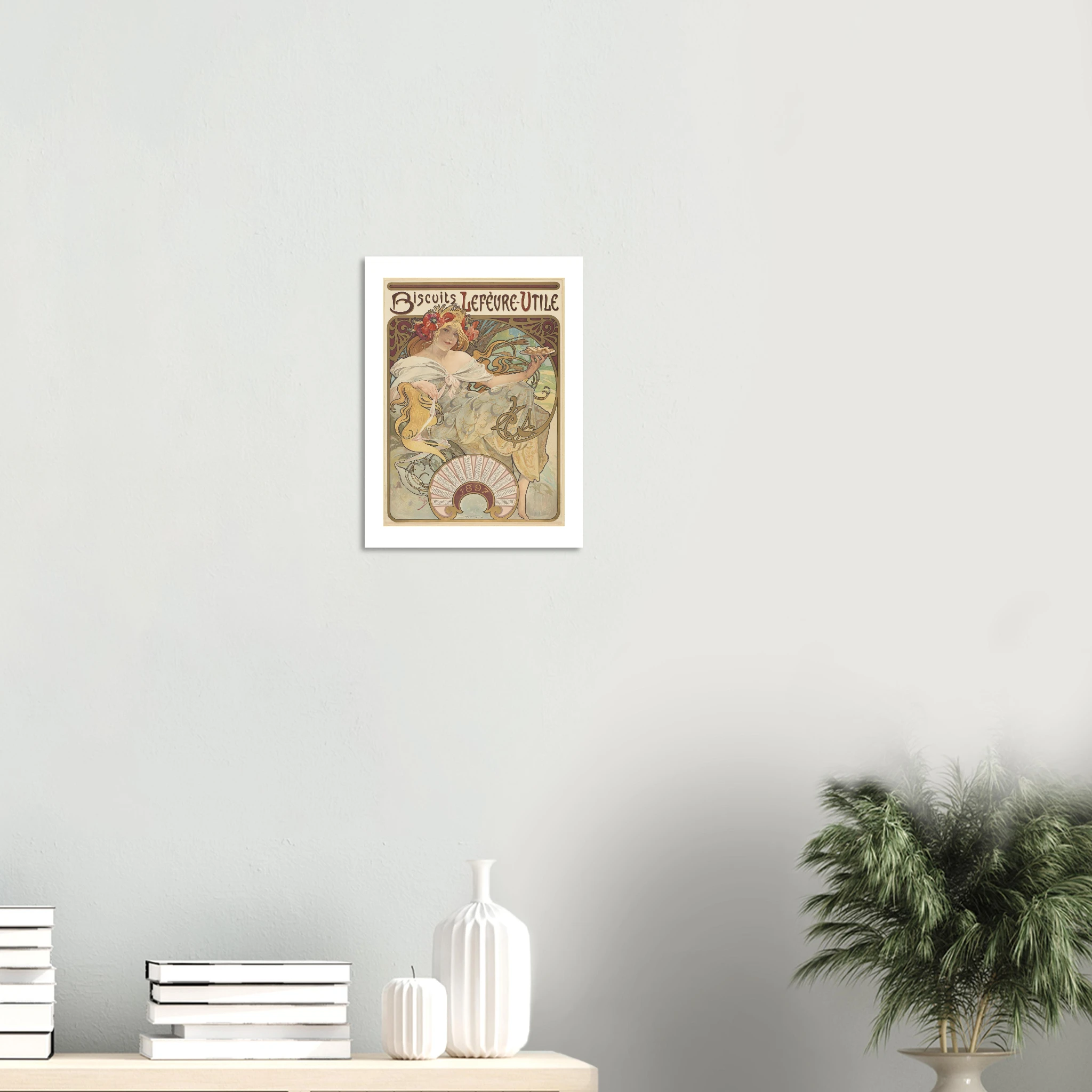 Esta obra maestra publicitaria de 1896 marca un hito en la historia del diseño comercial y el nacimiento visual de una de las marcas más icónicas de Francia: LU (Lefèvre-Utile). Mucha creó esta imagen que definiría la identidad de la marca durante décadas, presentando una figura femenina idealizada en el rol de anfitriona perfecta, ofreciendo las galletas en una bandeja dorada.