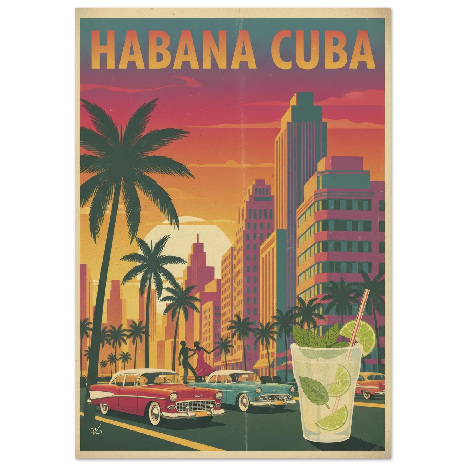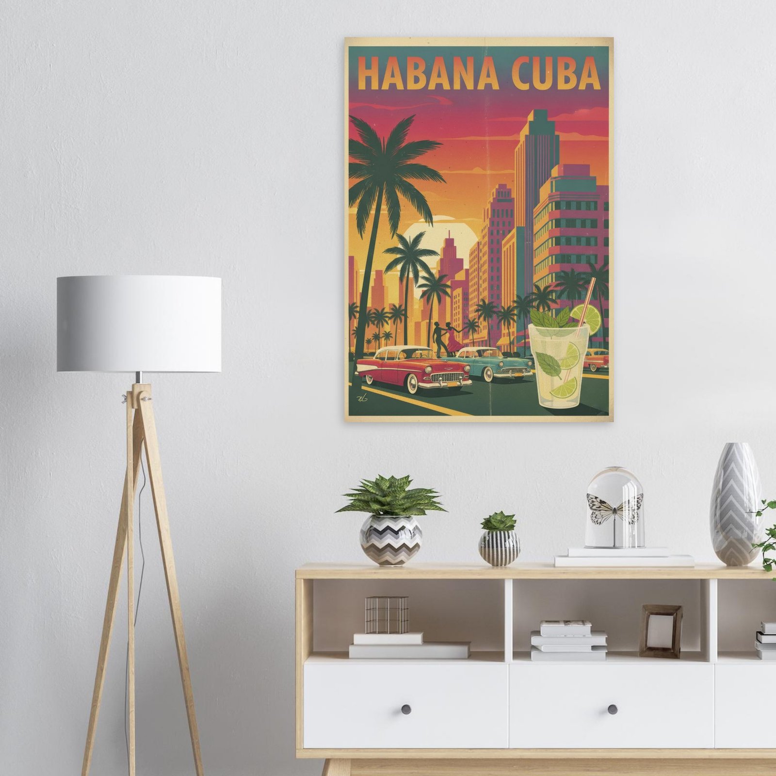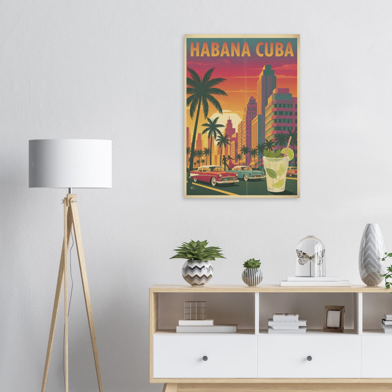 Captura el espíritu vibrante de La Habana en su época dorada con este póster vintage. Los años 50 representaron el apogeo del turismo cubano, y esta pieza rinde homenaje a esa era de esplendor tropical, coches americanos clásicos y arquitectura Art Deco. Los colores cálidos y la composición dinámica transportan al espectador a las calles llenas de música y vida de la capital cubana. Ideal para crear un ambiente caribeño auténtico con un toque nostálgico.