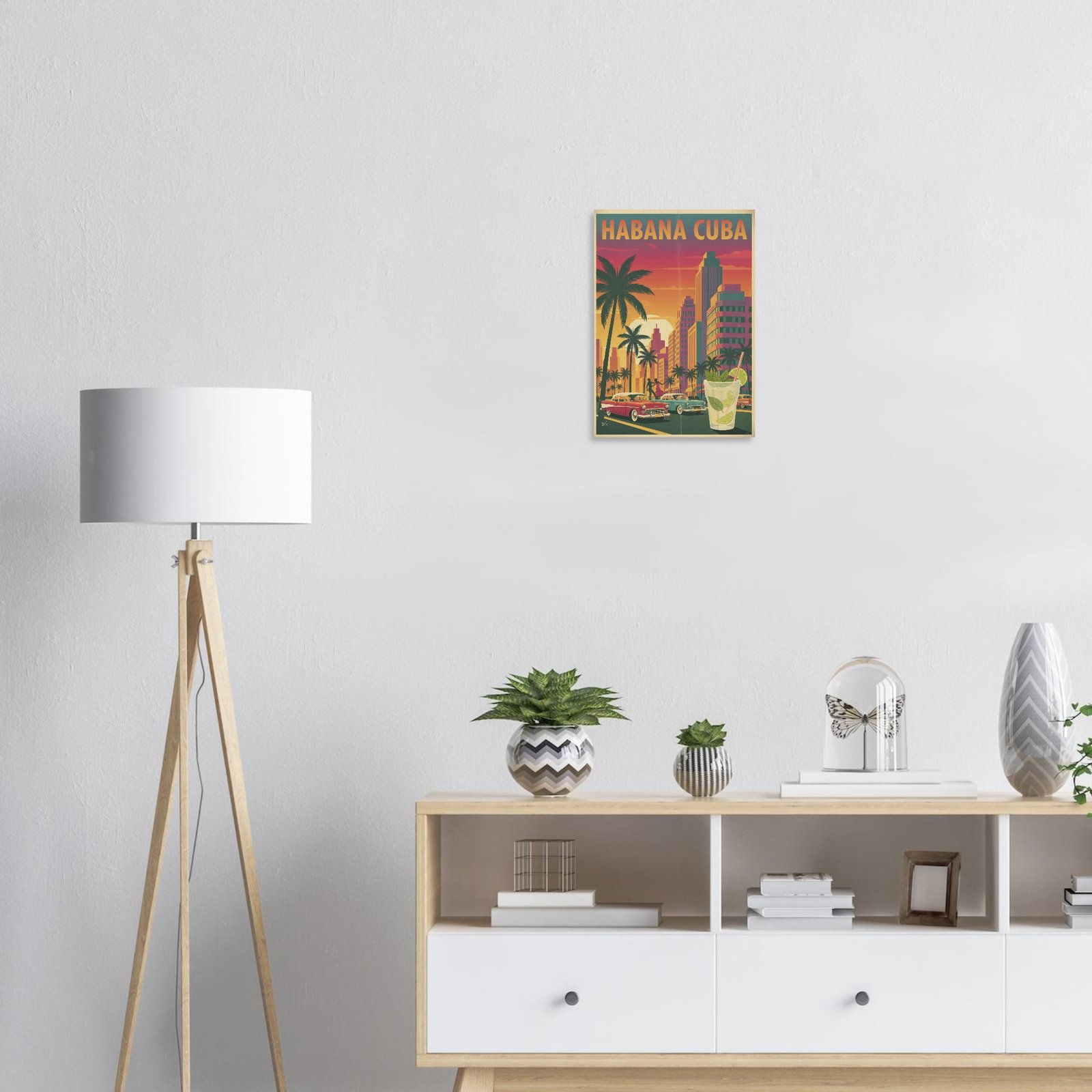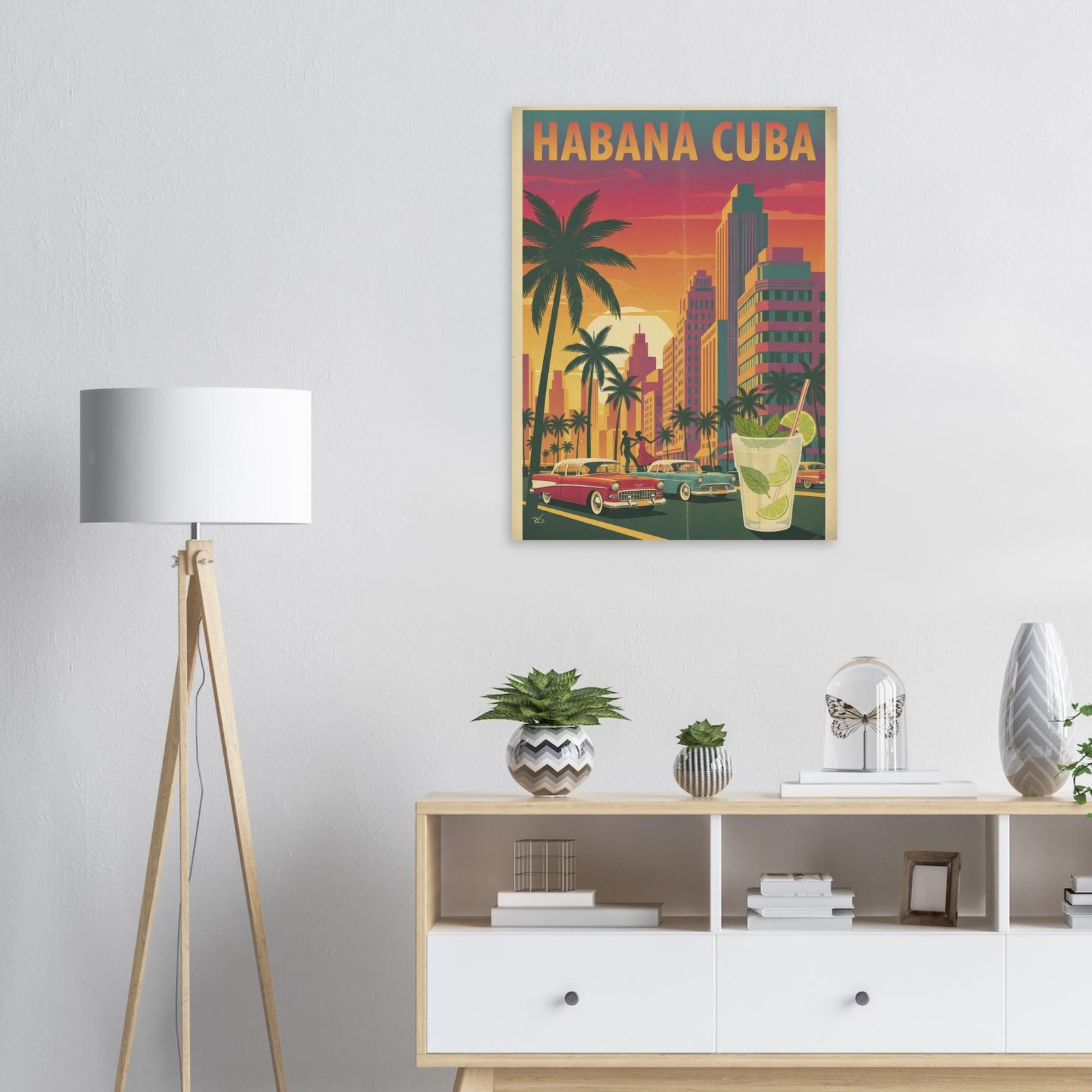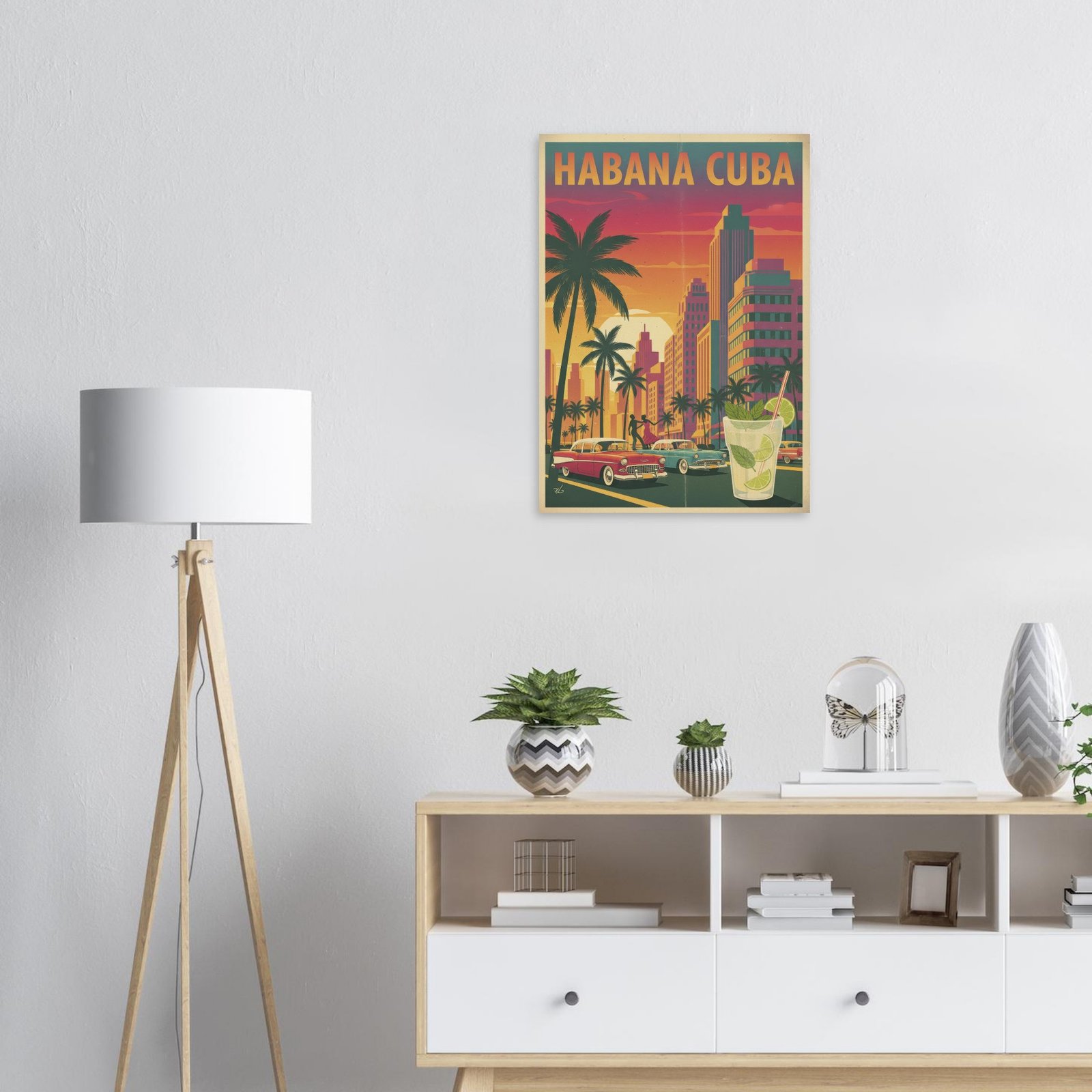 Captura el espíritu vibrante de La Habana en su época dorada con este póster vintage. Los años 50 representaron el apogeo del turismo cubano, y esta pieza rinde homenaje a esa era de esplendor tropical, coches americanos clásicos y arquitectura Art Deco. Los colores cálidos y la composición dinámica transportan al espectador a las calles llenas de música y vida de la capital cubana. Ideal para crear un ambiente caribeño auténtico con un toque nostálgico.