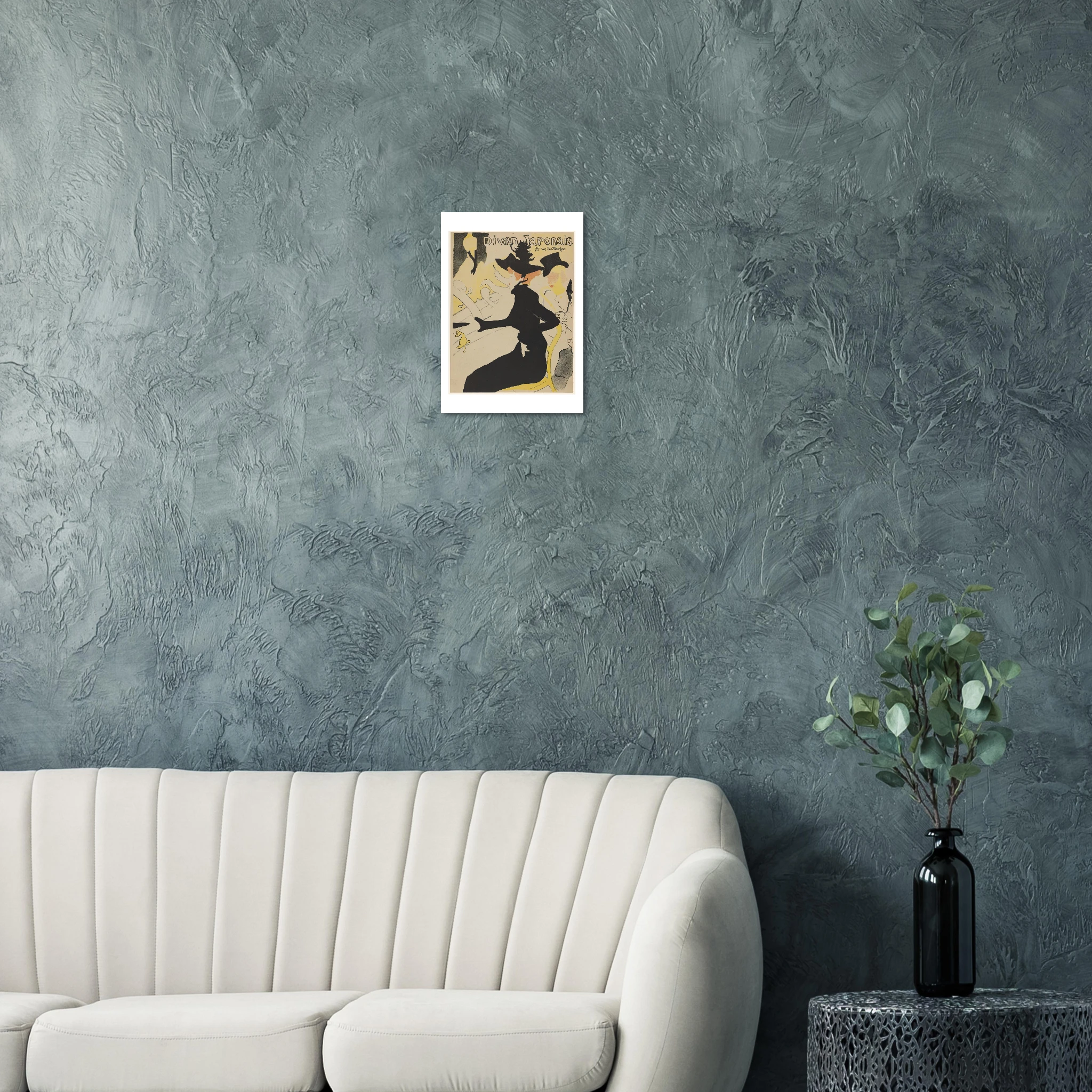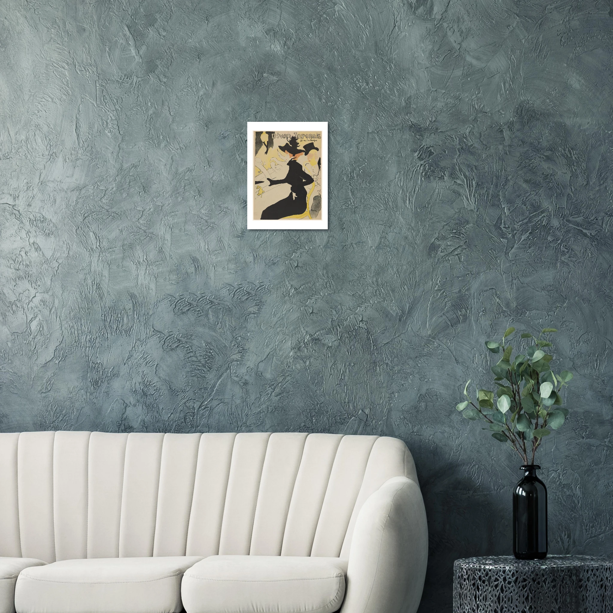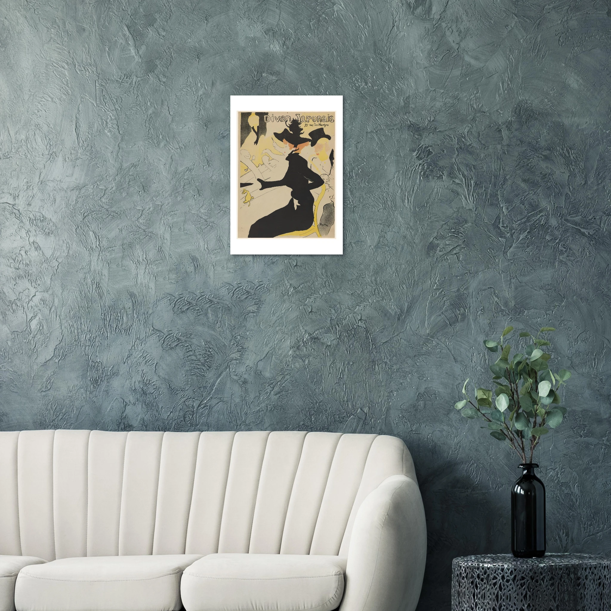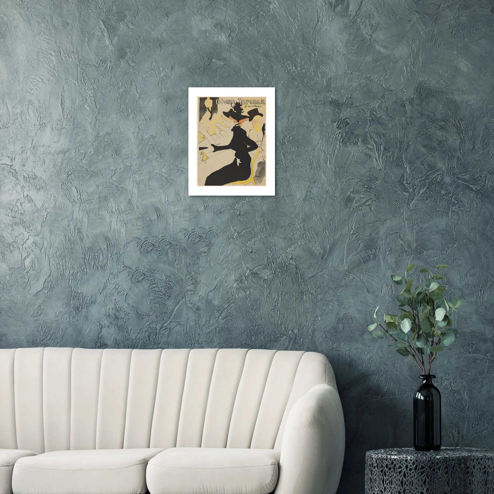 Creado en 1892, este póster para el Divan Japonais representa un momento crucial tanto en la carrera de Toulouse-Lautrec como en la historia del diseño gráfico. La obra muestra al crítico de arte Édouard Dujardin acompañado por la bailarina Jane Avril, mientras que en el escenario aparece decapitada (por el encuadre) la famosa cantante Yvette Guilbert, reconocible por sus característicos guantes negros largos.