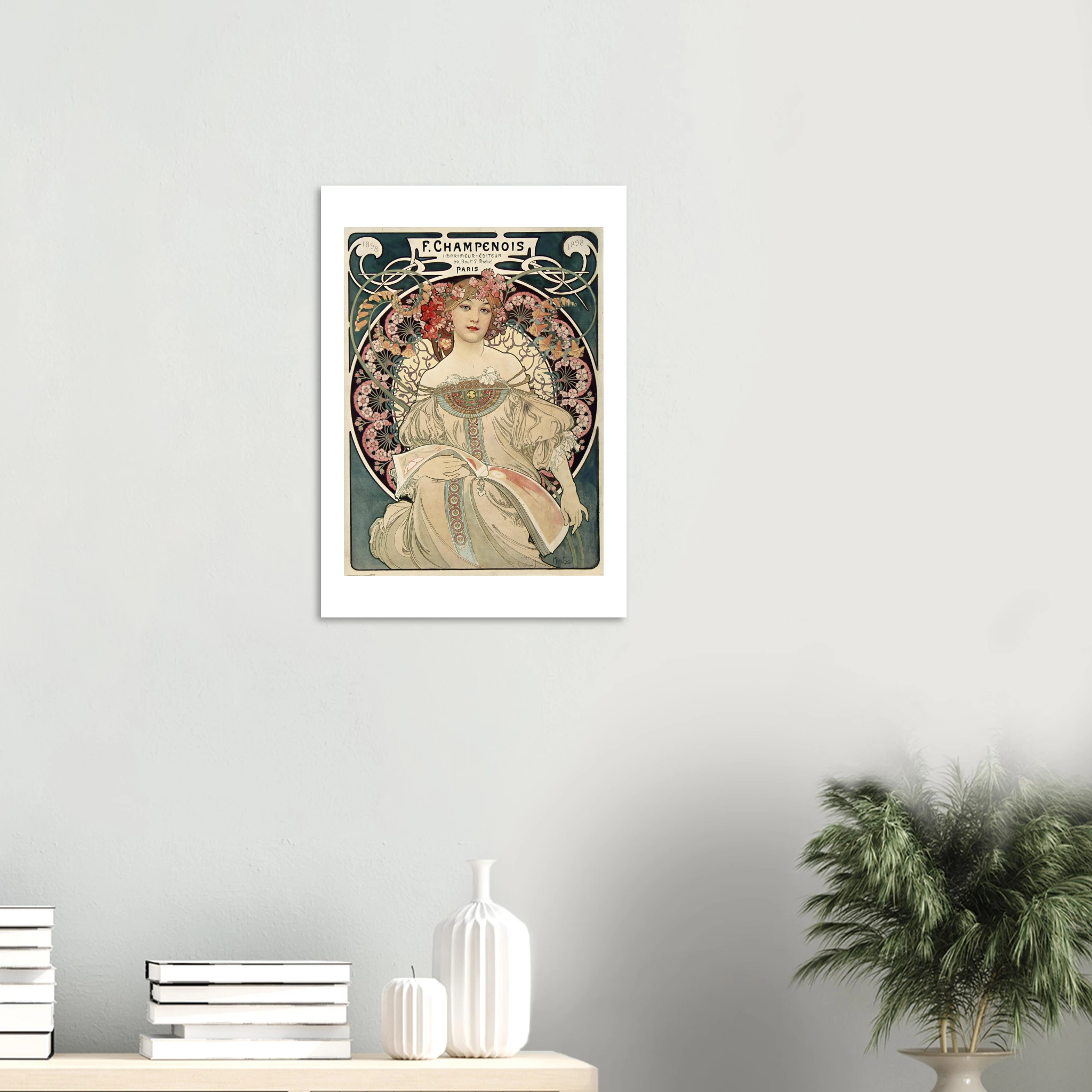 Creada en el apogeo del Art Nouveau, esta obra coincide con el período más productivo de Mucha en París, cuando su estilo definió la estética visual de toda una época. Perfecta para espacios que buscan elegancia clásica con un toque bohemio y artístico.