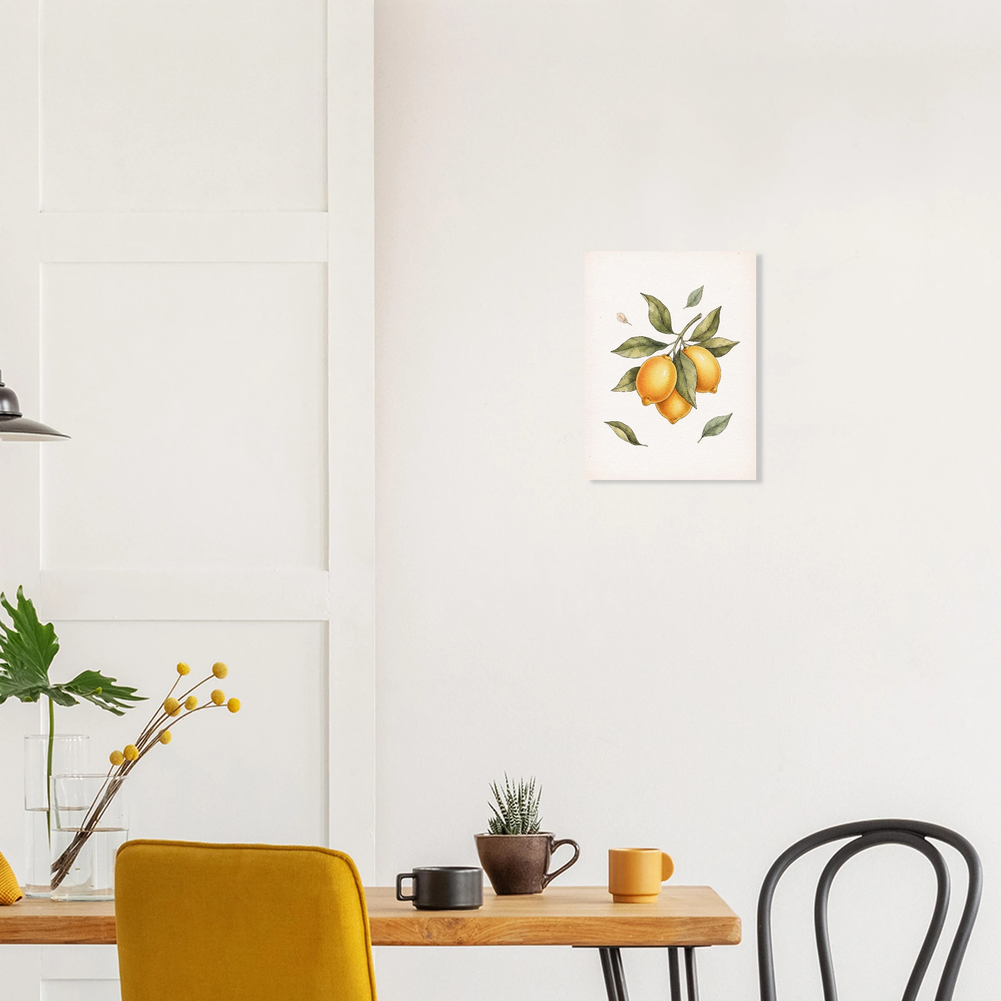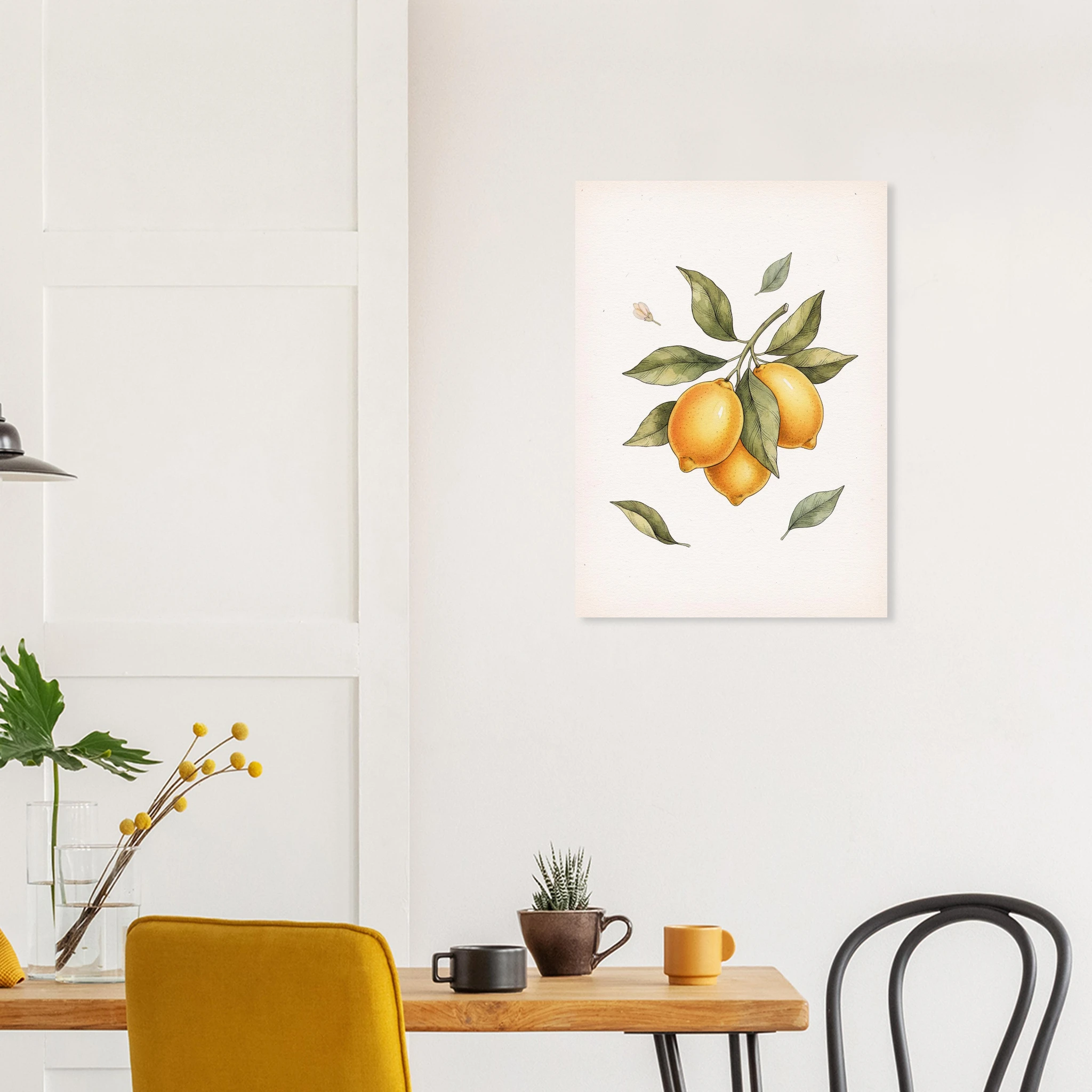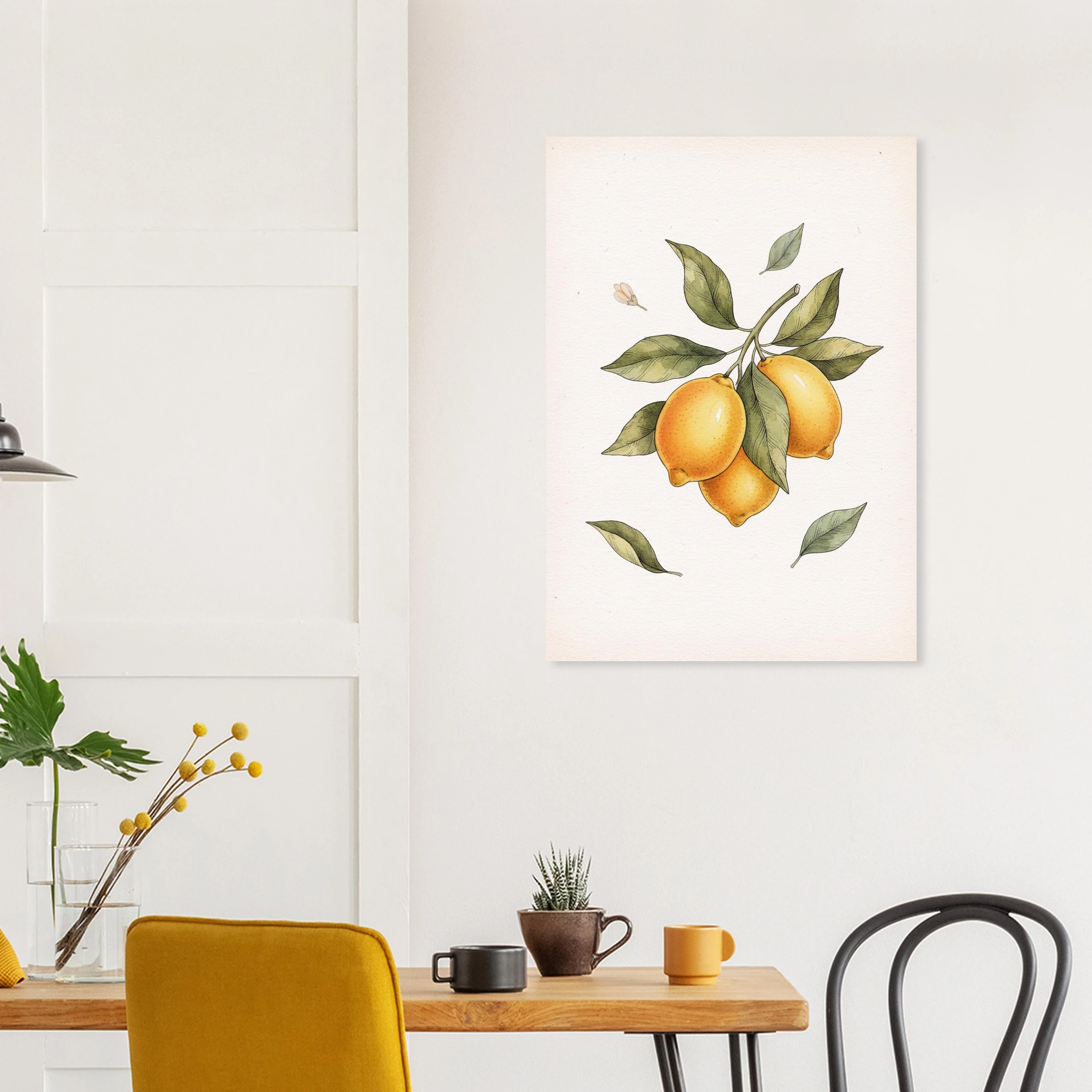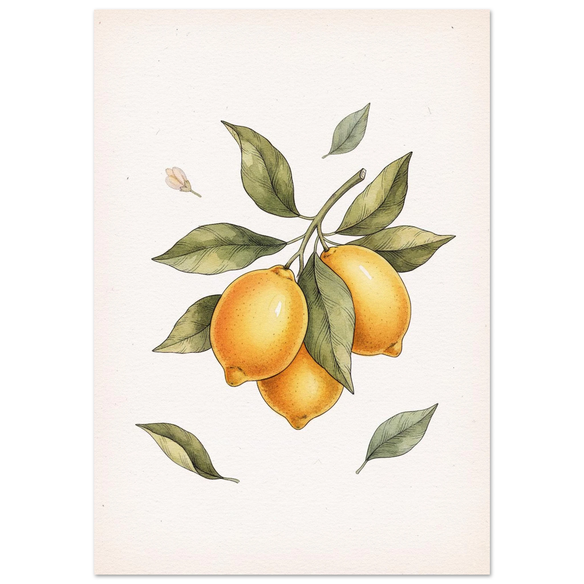 Limones de la Riviera captura la luz y frescura del Mediterráneo en limones maduros colgando de su rama. Esta ilustración botánica en estilo acuarela suave evoca cocinas francesas, terrazas italianas y la simplicidad elegante de la vida costera.