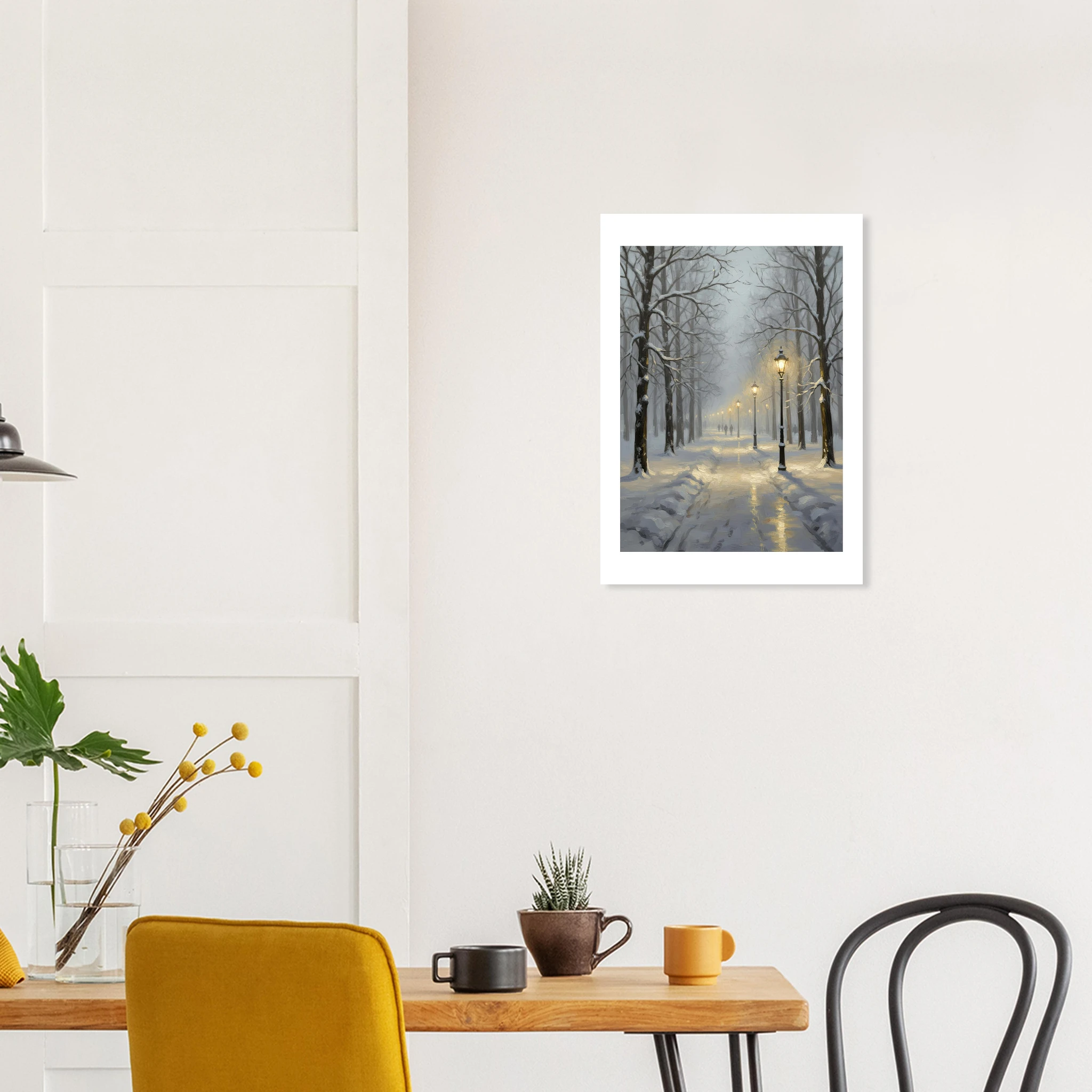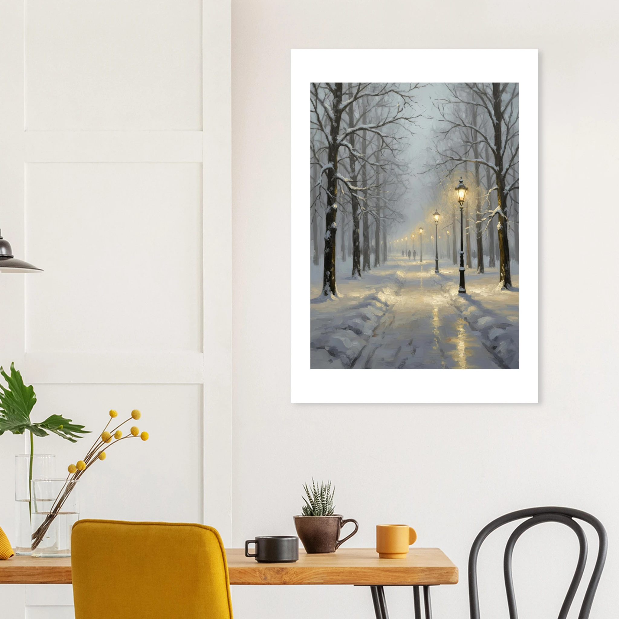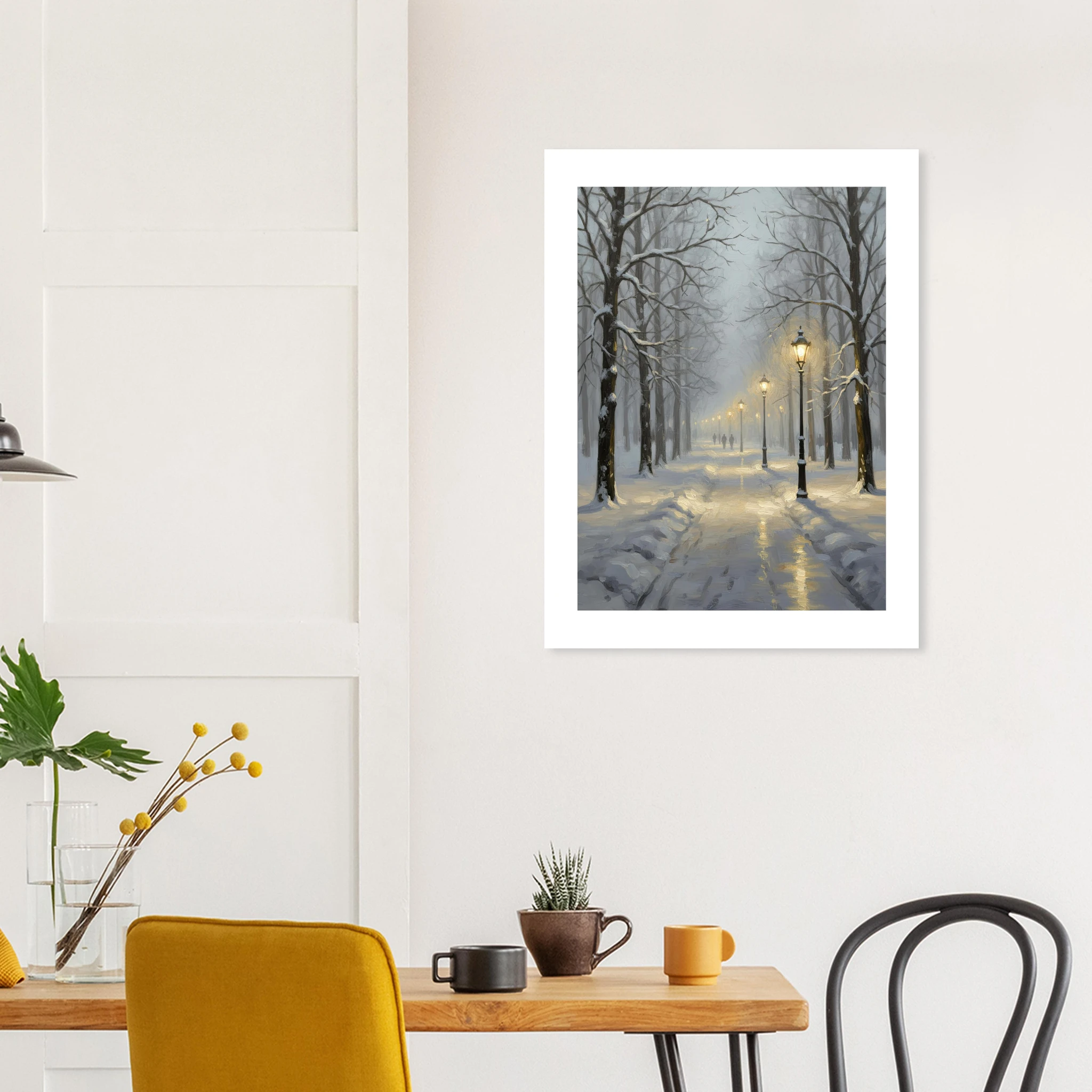 Su composición y tratamiento de la luz evocan la serenidad de una tarde de invierno y la nostalgia de los paseos silenciosos bajo la nieve.