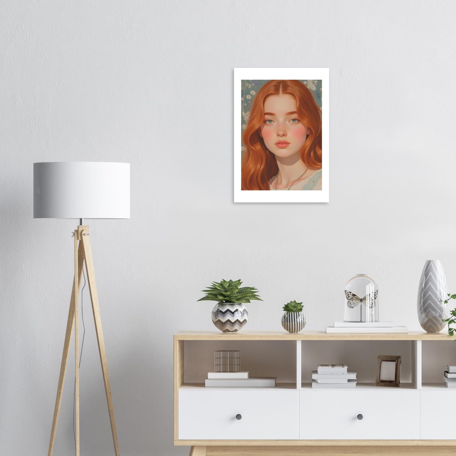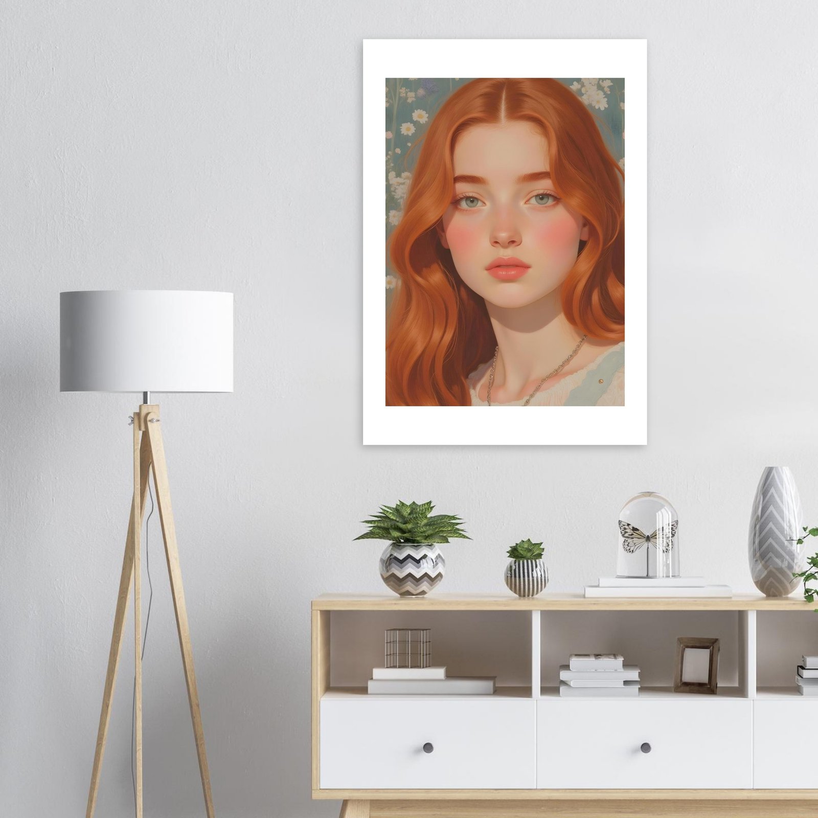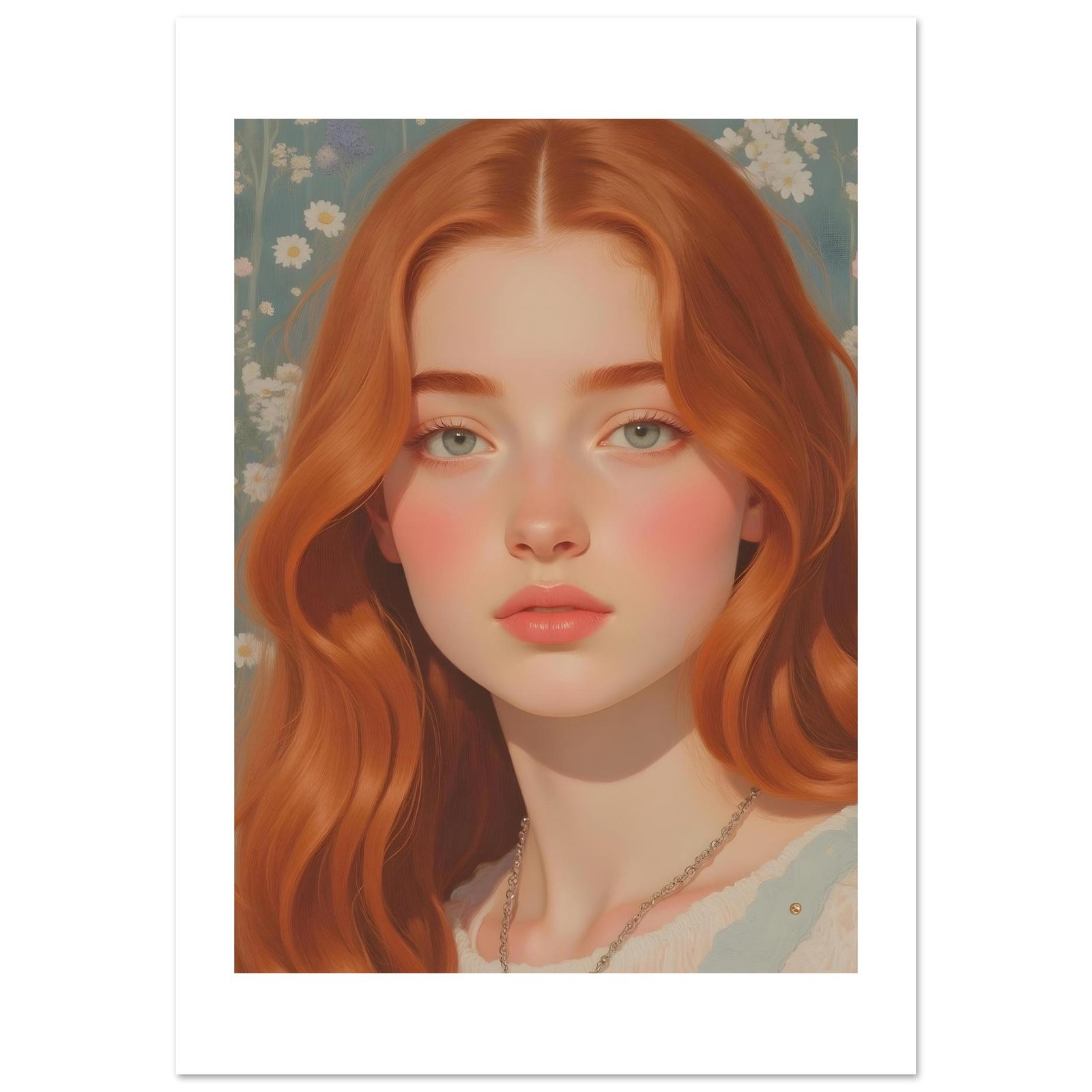 La ilustración digital “Sofía” es una obra cautivadora que combina la suavidad de los tonos pastel con la calidez de una joven pelirroja de expresión serena y envolvente. Con su melena cobriza y mirada profunda, Sofía encarna una belleza atemporal y una sutil dulzura, ideal para quienes buscan agregar a sus espacios un toque artístico único y contemporáneo.