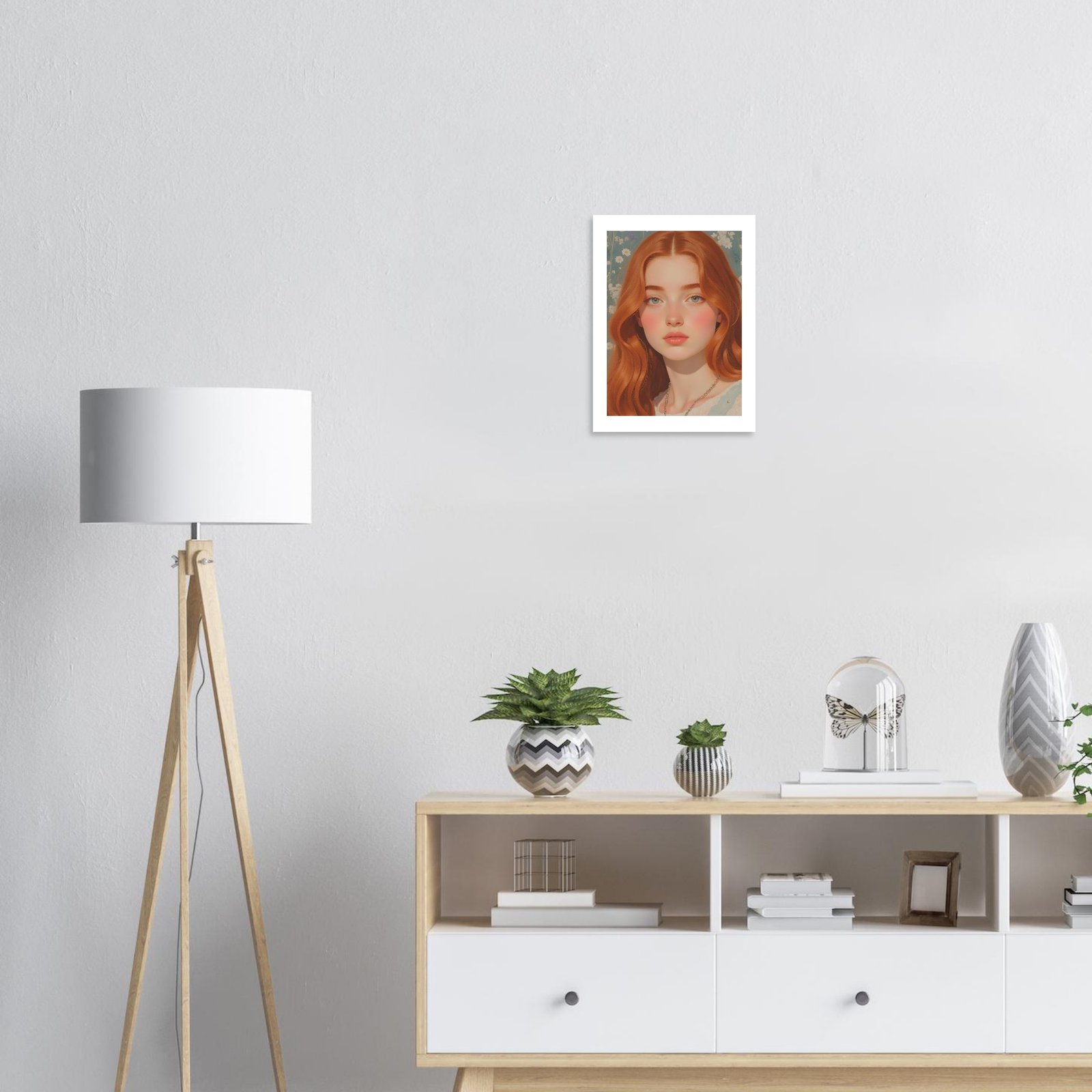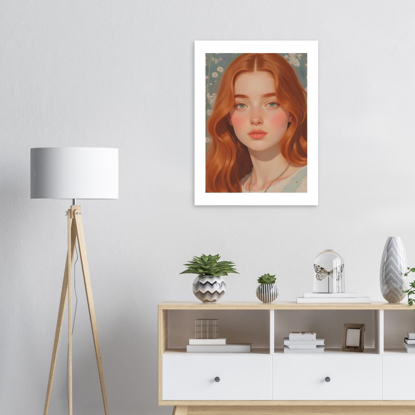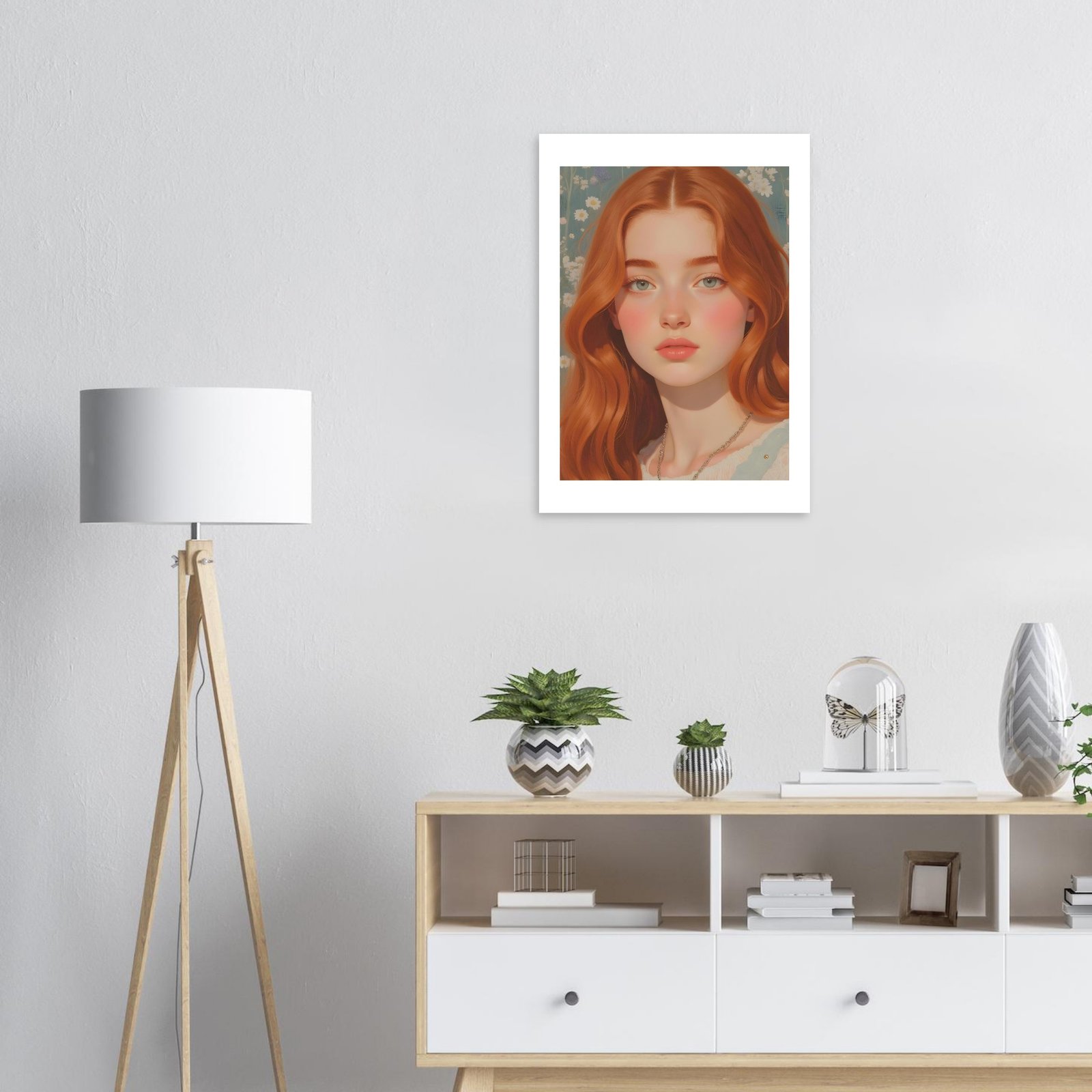 La ilustración digital “Sofía” es una obra cautivadora que combina la suavidad de los tonos pastel con la calidez de una joven pelirroja de expresión serena y envolvente. Con su melena cobriza y mirada profunda, Sofía encarna una belleza atemporal y una sutil dulzura, ideal para quienes buscan agregar a sus espacios un toque artístico único y contemporáneo.