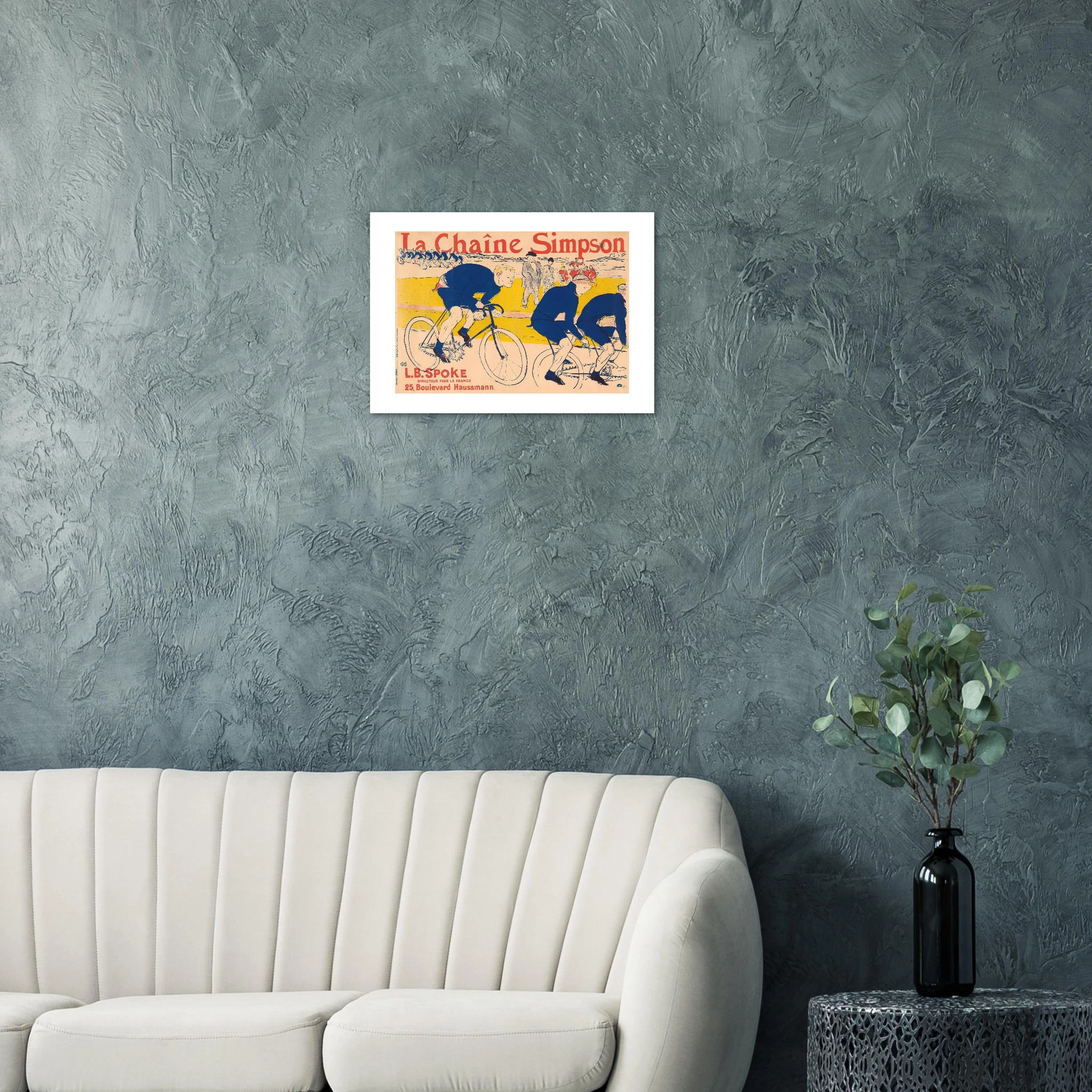 Toulouse-Lautrec diseña una composición dinámica donde la figura del ciclista transmite velocidad y elegancia. El artista emplea su característico estilo gráfico con líneas fluidas y colores contrastantes que capturan la atención del espectador. La tipografía se integra armoniosamente con la imagen, creando un equilibrio visual perfecto.
